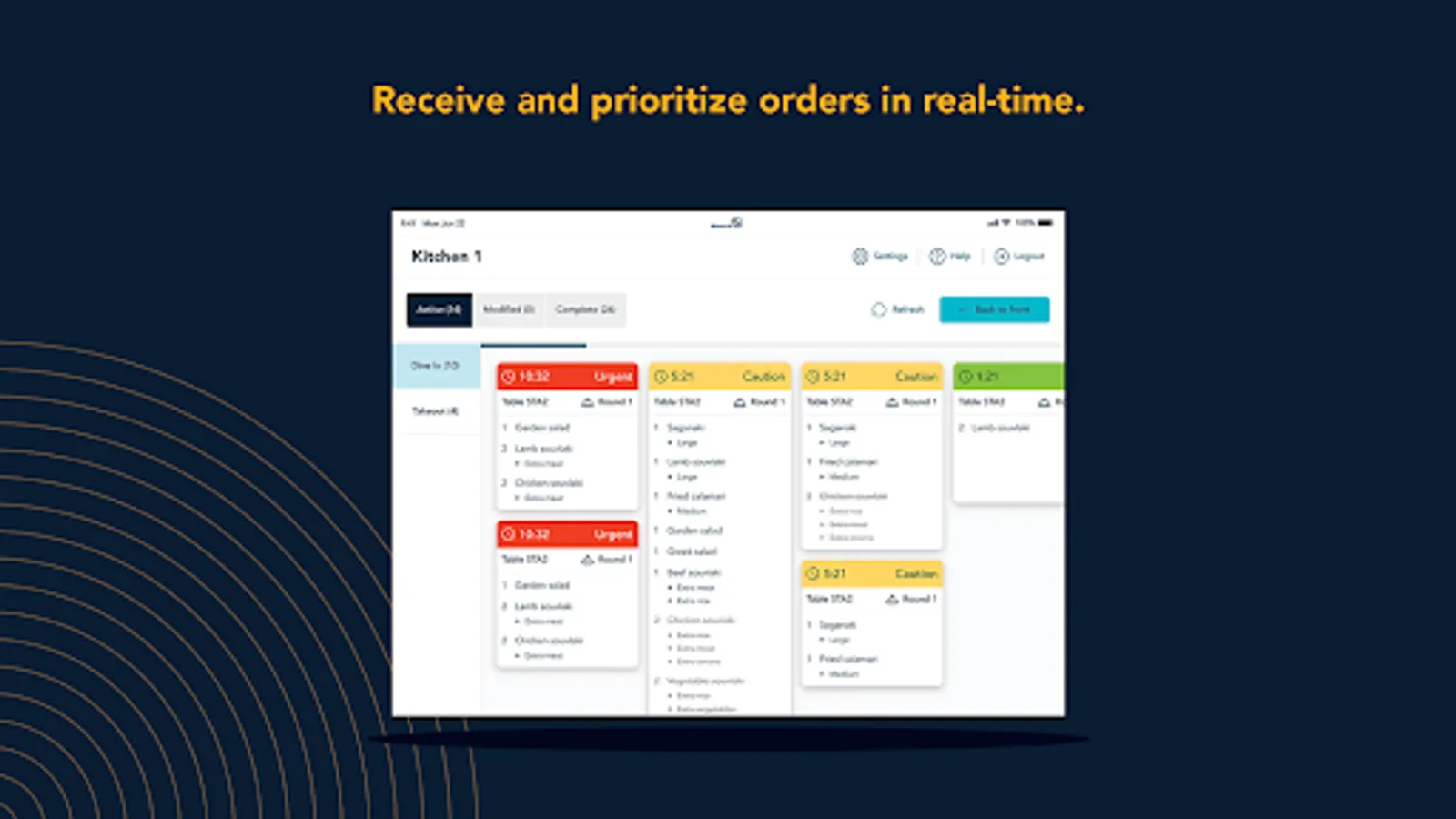 • A holistic view: Receive tickets in real-time from all order channels including dine-in, takeout, and online, so you know everything that needs to be prepared.