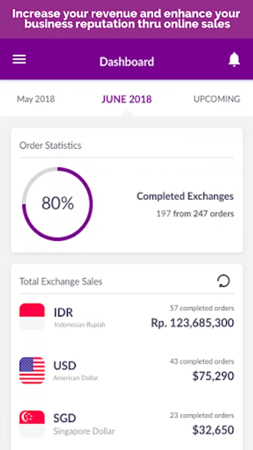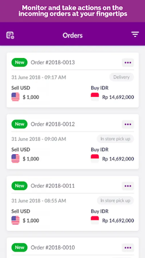 Moneta is an online matching and booking platform for currency exchange in Indonesia. Moneta helps licensed money changers to increase their market visibility and provides extra services to customers. In addition, the customers can book the rates they find, and choose either in-store collection or delivery service. Moneta Partner app allows the merchants to update their pricing and monitor orders.
