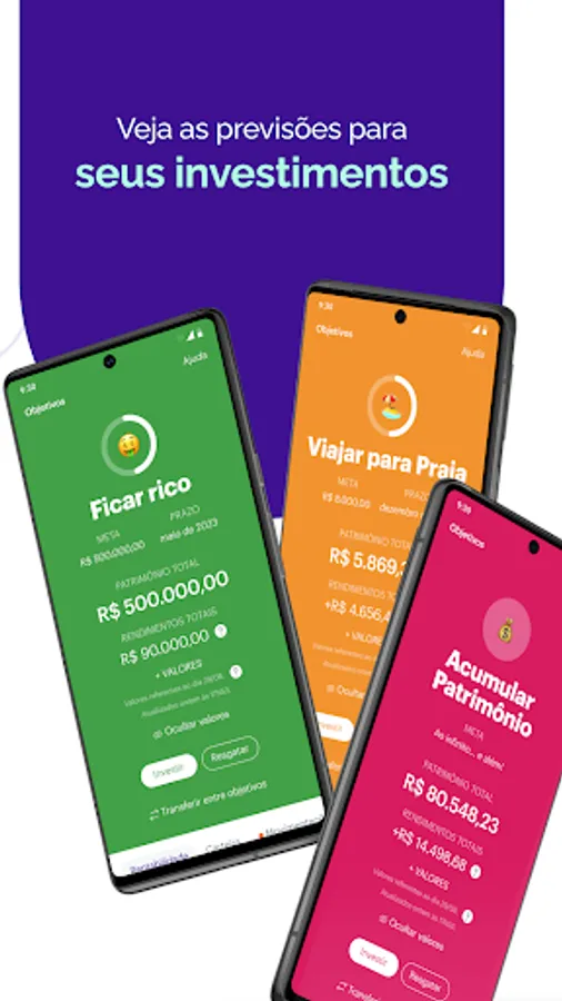 We are Monetus' experience in the financial market united with the Mobills finance platform with the purpose of simplifying and democratizing access to the financial market. Here you can invest with a focus on specific objectives, such as your emergency reserve or the purchase of a good. Or if you prefer, invest only for the purpose of making money and increasing your equity. 🤑