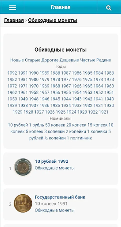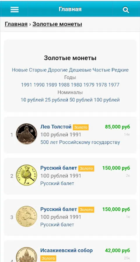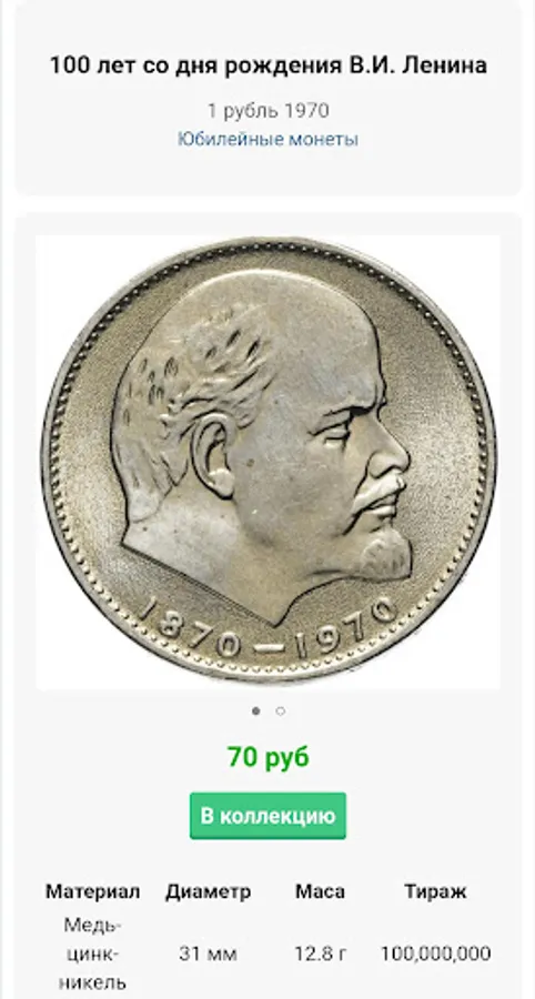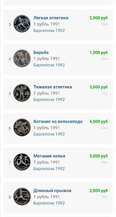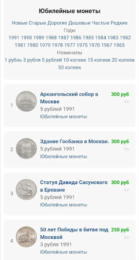 Up-to-date monitoring of prices for coins of the USSR, quick search through auctions, convenient collection management.