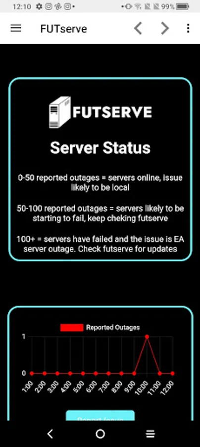 FUTserve is fully interactive and it determines the server status by social media reports/sentiment and reports received.