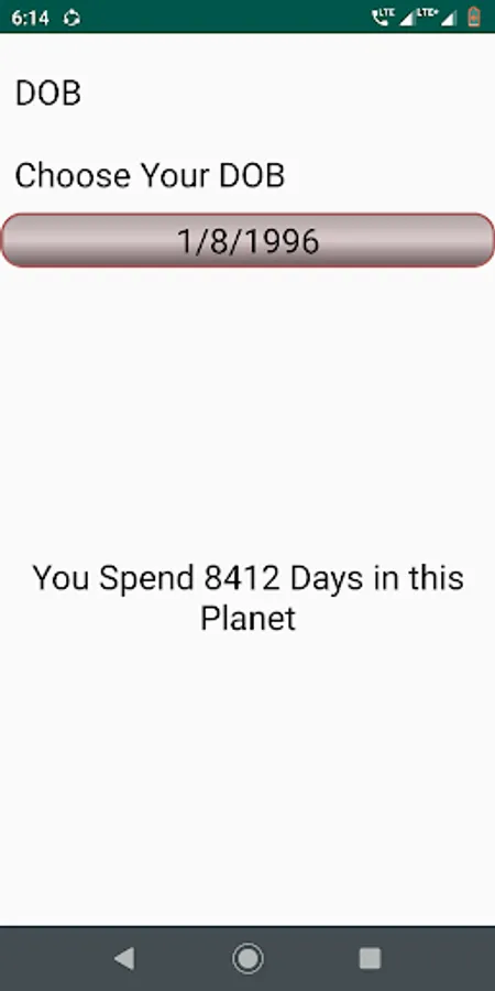 This App give you a number of days you spend in this planet, you need to just choose the date and it will calculate the days and show you screen.