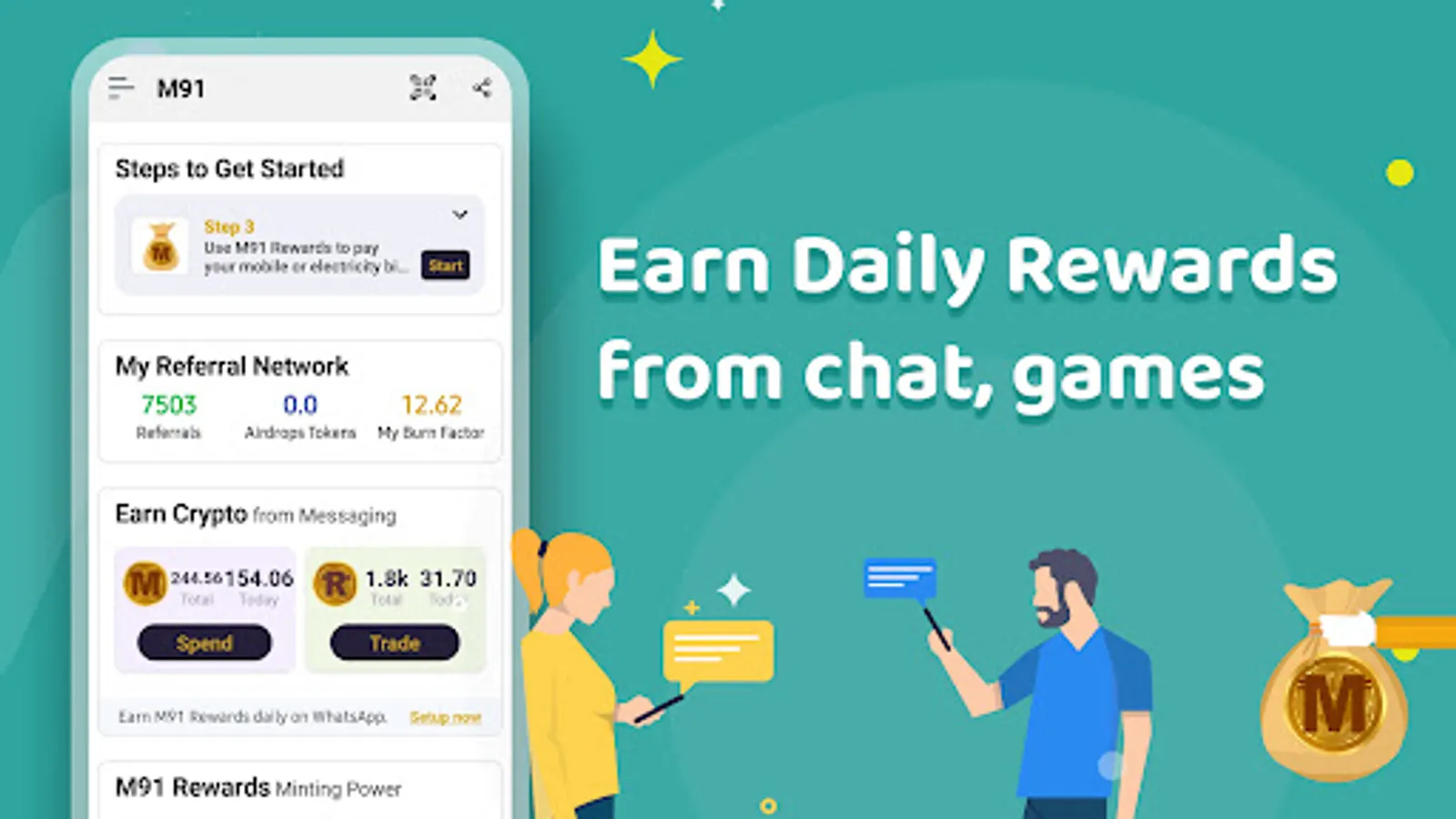 M91 is World's 1st Crypto Super App which rewards Crypto for your daily routine activities like chatting with friends or playing games!