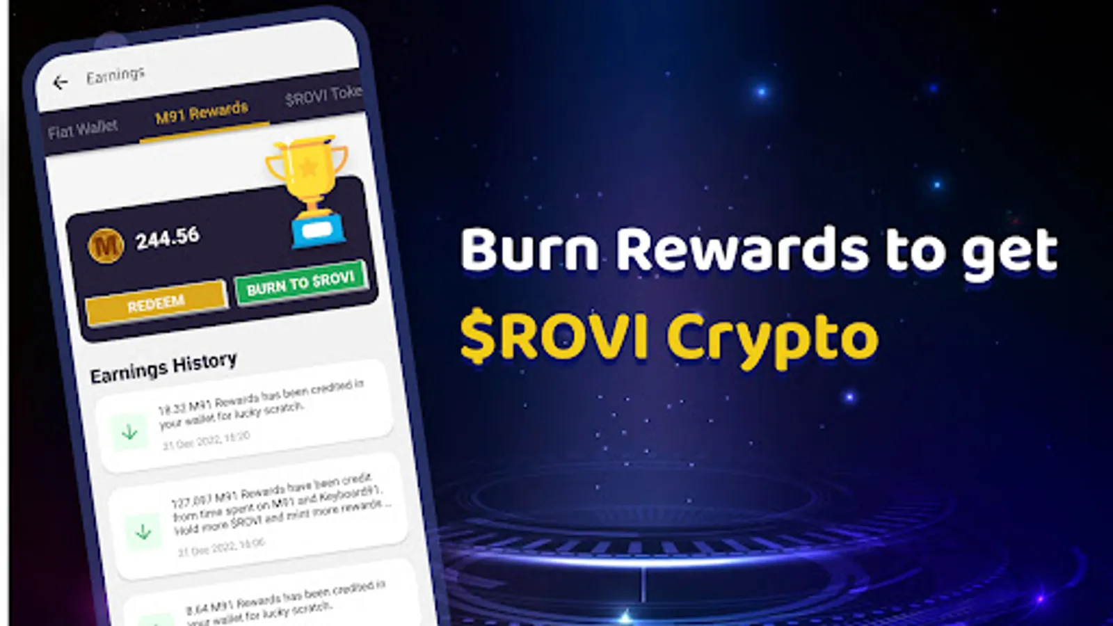 1. Burn M91 Rewards daily based on Spends and Transactions and earn $ROVI token