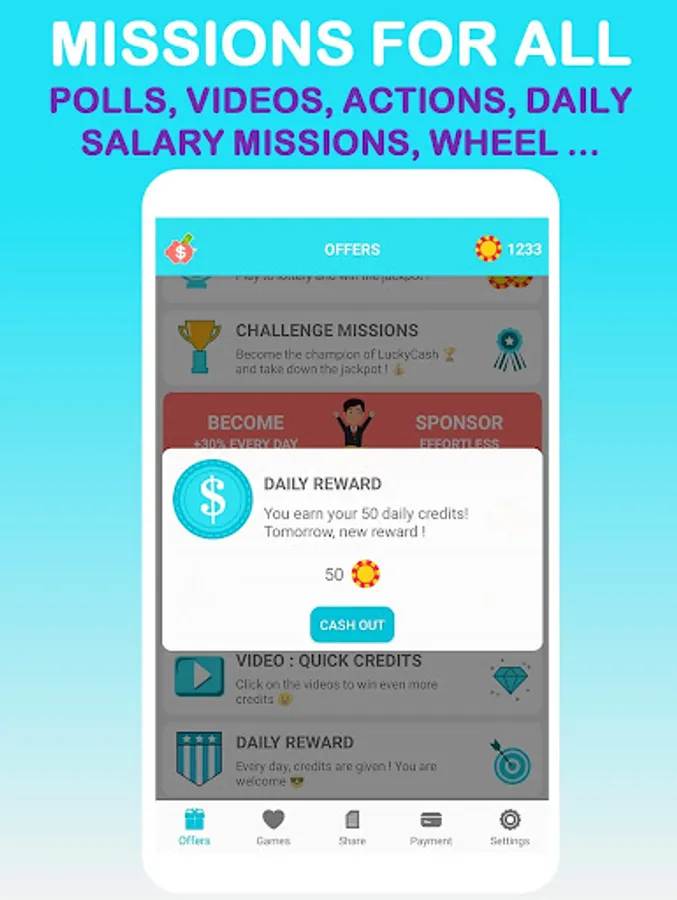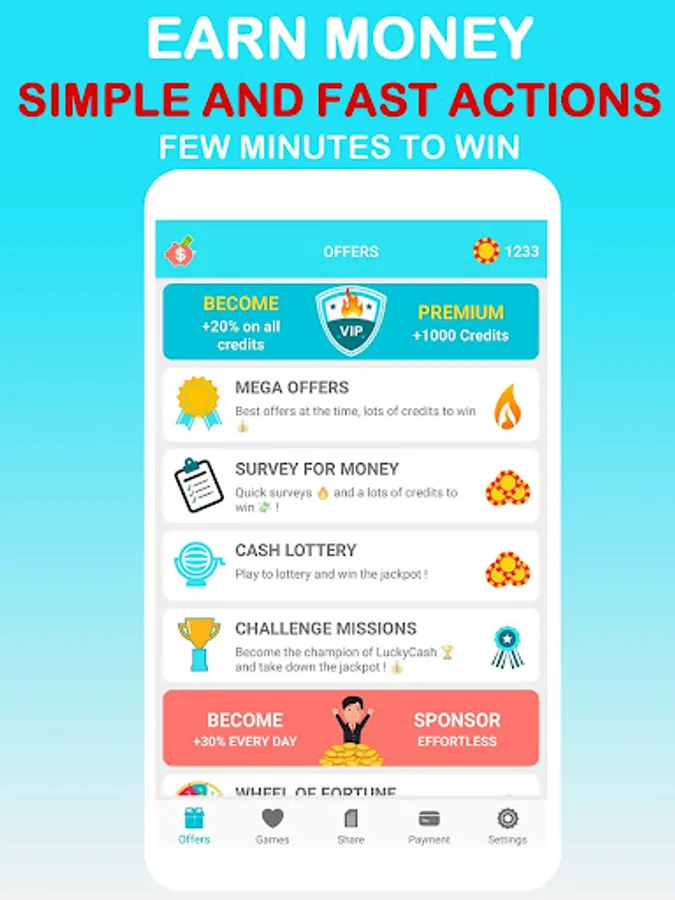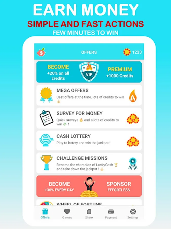With LuckyCash, Earn credits with simple and fast actions. Turn your credits into real money! Easy, free and fast to make money. PayPal or gift cards.