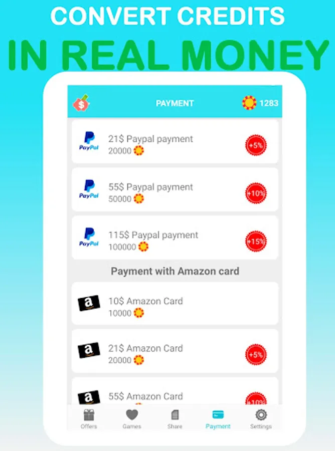 Once credits are earned, you can easily exchange your prize pool for real money! Gift cards or PayPal transfer is your choice! Making real money by trading your credits is as easy as that!