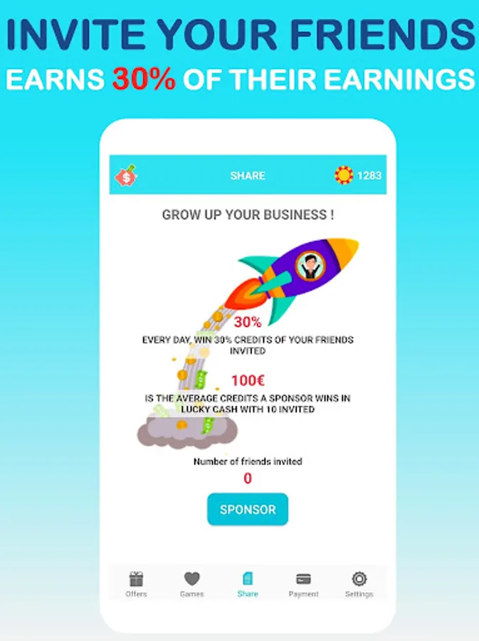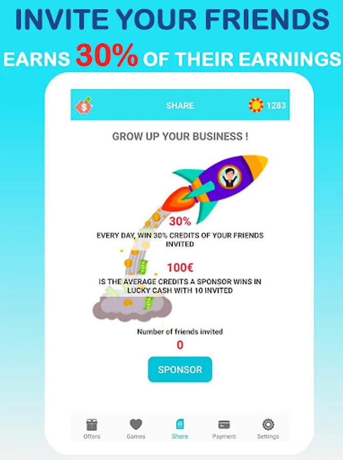 To increase your income, you can invite and sponsor new players. We then win every day 30% in addition to the winnings generated by our friends!