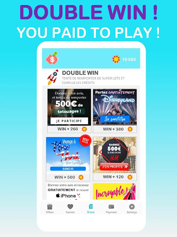 It is also possible to play DOUBLE WIN, they are contests to win prizes. Registration earns credits and the user has a chance to win the jackpot!