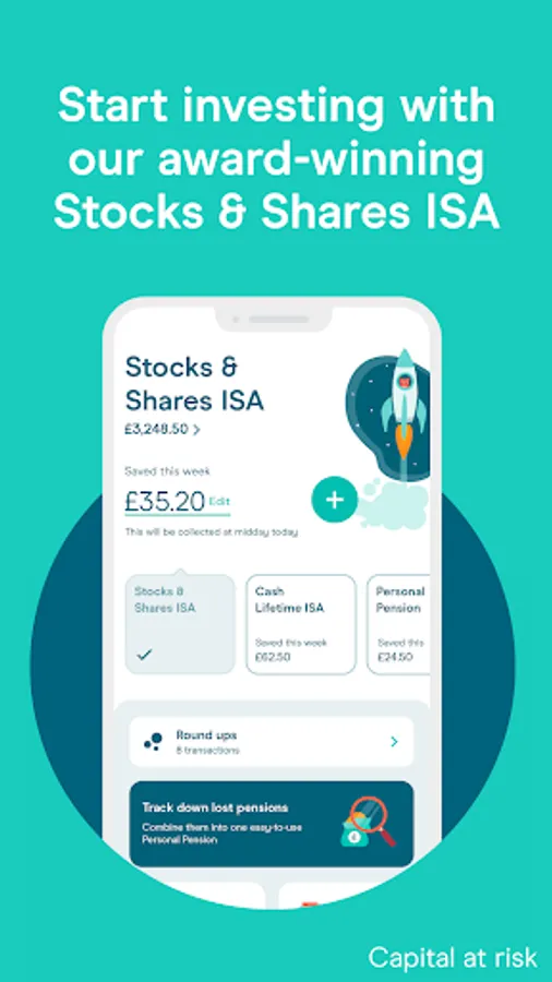 • Start saving, automatically: Set up a regular weekly deposit, a monthly payday boost, or round up your everyday card purchases to the nearest pound and save or invest the spare change e.g. when you buy a coffee for £2.40, you can choose to ‘round up’ to £3 and set aside the 60p change. You can also make one-off deposits whenever you like.