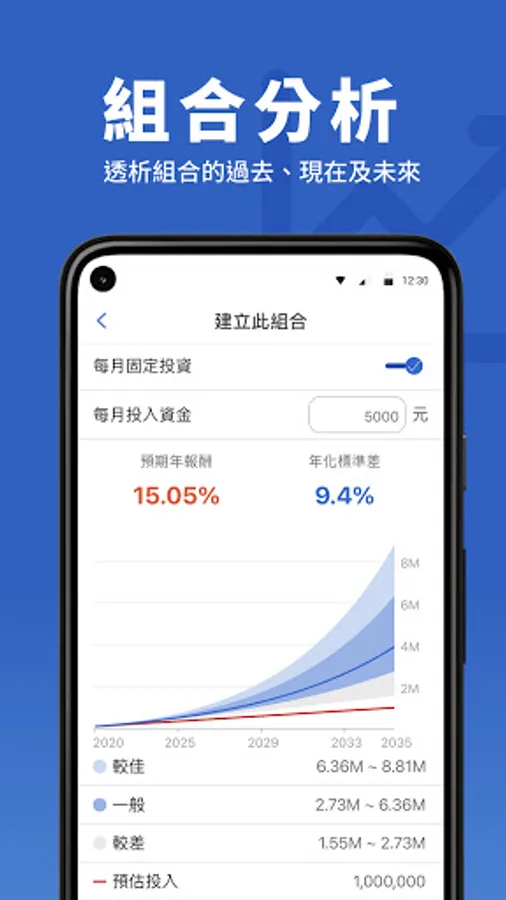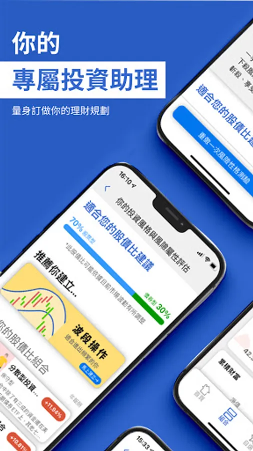 ● 自訂組合:有自己的想法或資產部位嗎?快來建立你的投資組合,我們幫你追蹤、分析及監控。