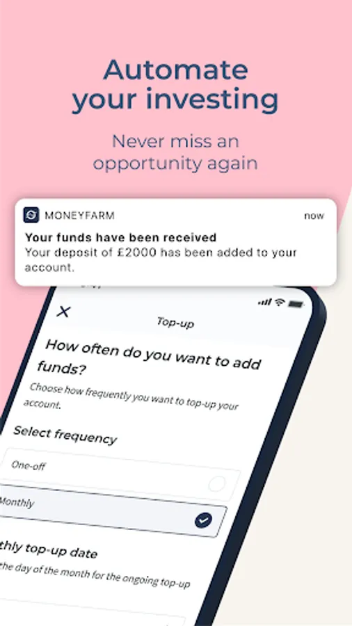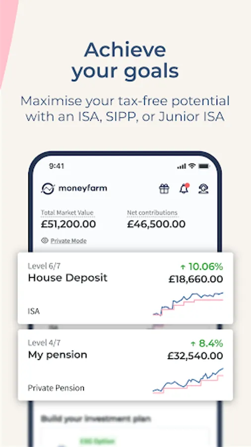 Save time and gain peace of mind. Moneyfarm is built for all levels of experience and is great for investors who want to track performance on the go. Our technology is designed to automate your investing experience and allow you to be hands-off if you want to be.