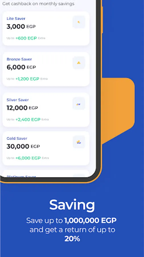 5. Smart Saving; The smartest saving option in the market is where you can save up to 120,000 EGP and get a return of up to 20% on top of your savings.