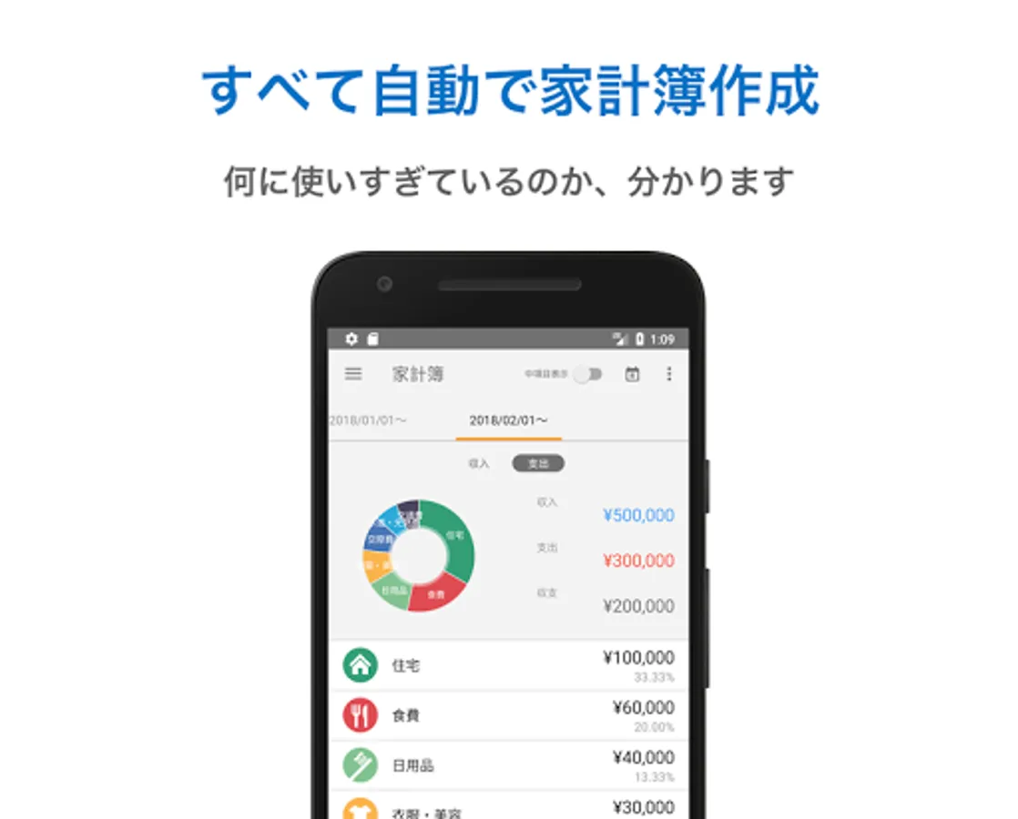 Money used for bank withdrawals and credit cards is automatically classified into categories such as food expenses and utility expenses, so