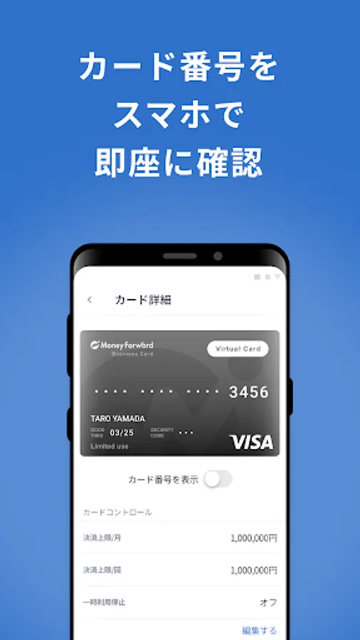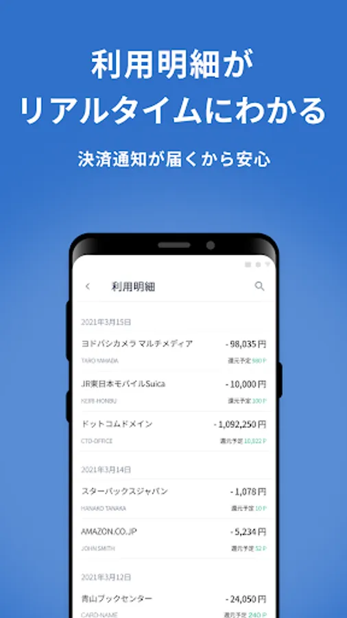 "Money Forward Pay for Business" is an application that allows you to check the usage history such as card payment, charge balance, and point balance from the application for Money Forward Business Card.