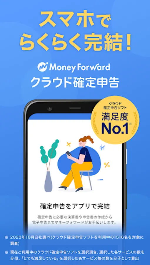 * Satisfaction No. 1 cloud tax return software: October 2020 in-house survey (survey of 1516 people using cloud tax return software)