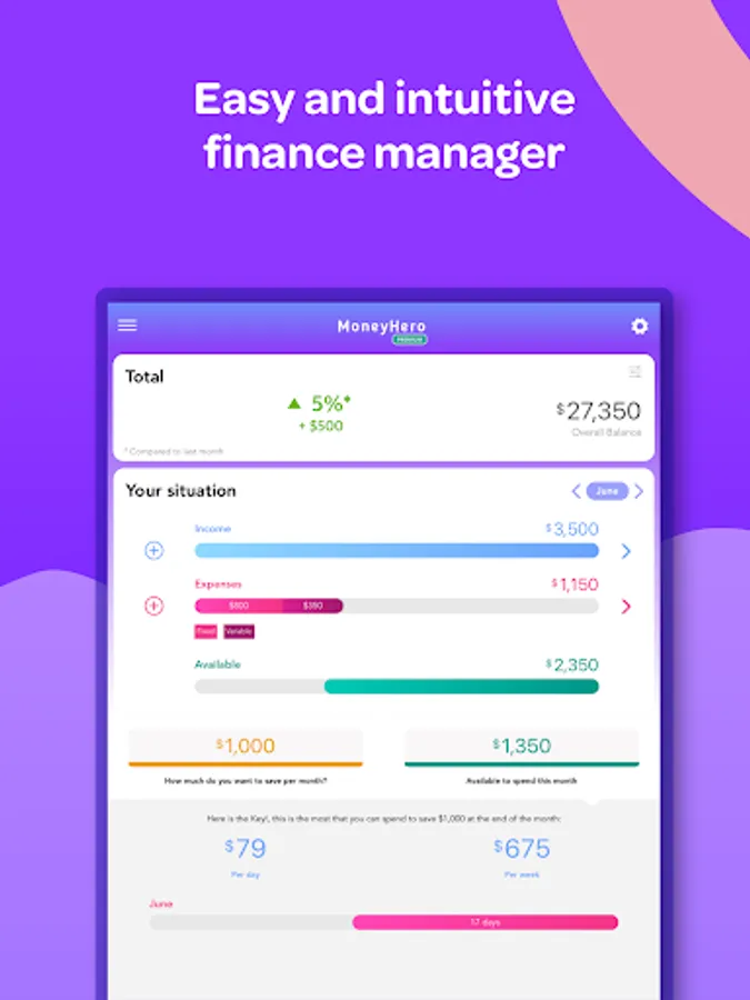 If you are looking for an app to save easily, manage costs and revenues and take control of your personal finances, MoneyHero help you.