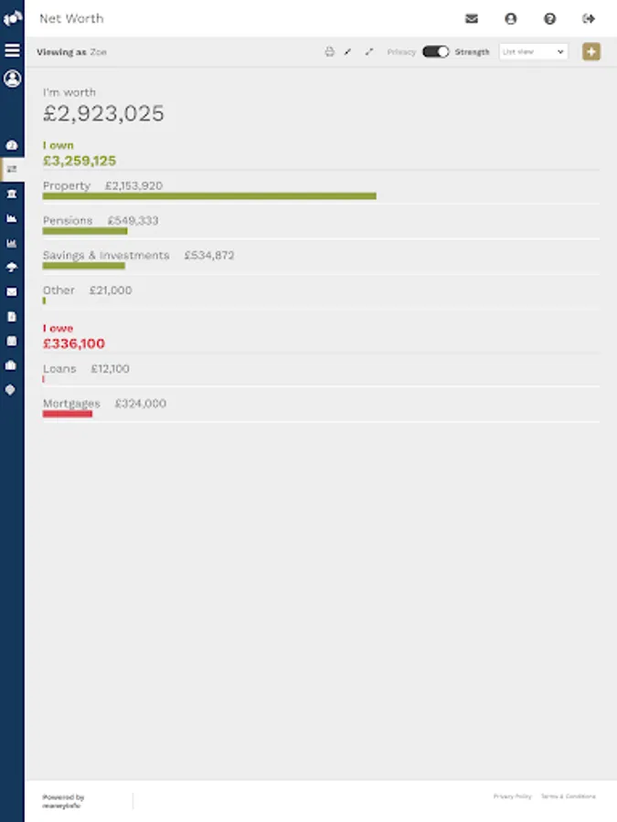 Think of it as your digital financial filing cabinet. All of your investments, savings, pensions, insurances, and property can be tracked together with all of the associated paperwork.