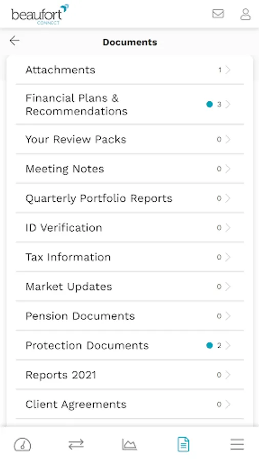 • From a single investment to an extensive investment portfolio; the Beaufort Connect app makes it simple to understand how your investments are doing with daily valuations, share and fund prices.