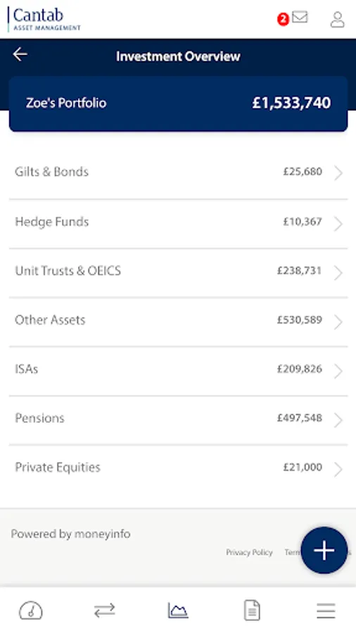 The Cantab Online app is a service provided by Cantab Asset Management and powered by moneyinfo that gives you a complete picture of your financial life.