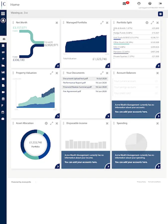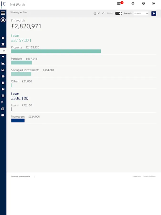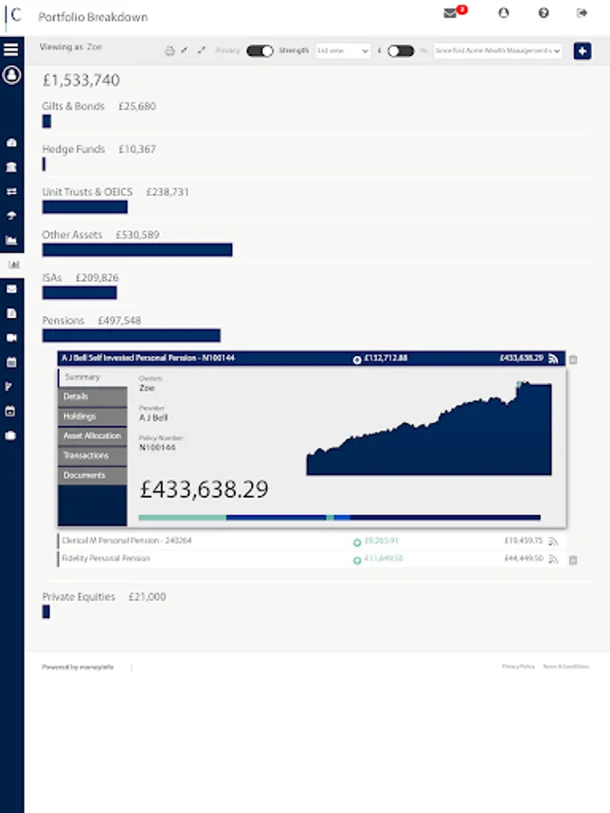 Think of it as your digital financial filing cabinet. All of your investments, savings, pensions, insurances, banking, credit cards and property can be tracked together with all of the associated paperwork.