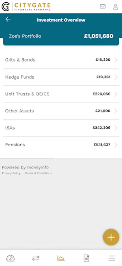 The Citygate Connect app is a service provided by Citygate Financial Planning and powered by moneyinfo that gives you a complete picture of your financial life.