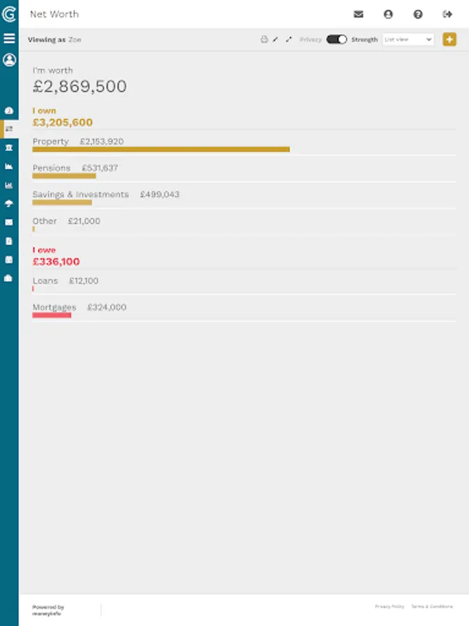 Think of it as your digital financial filing cabinet. All of your investments, savings, pensions, insurances, banking, credit cards and property can be tracked together with all of the associated paperwork.