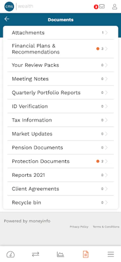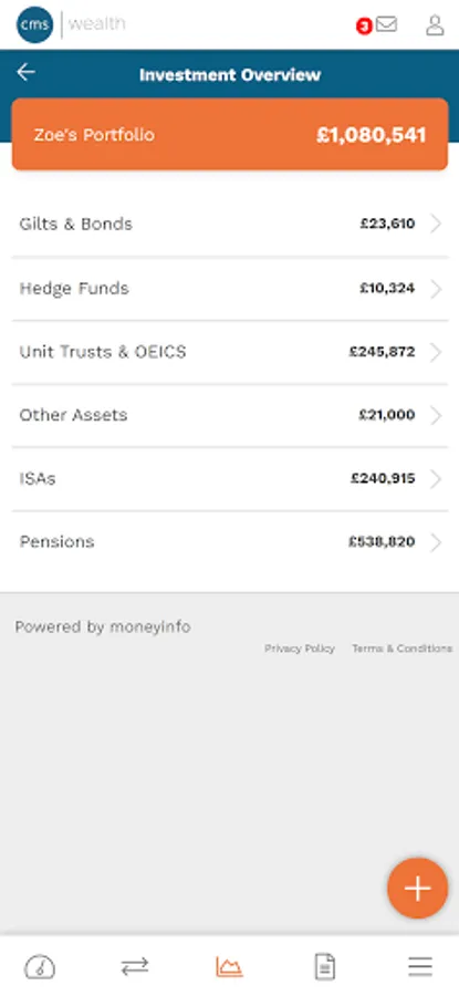 The MyCMS app is a service provided by CMS Wealth Ltd and powered by moneyinfo that gives you a complete picture of your financial life.