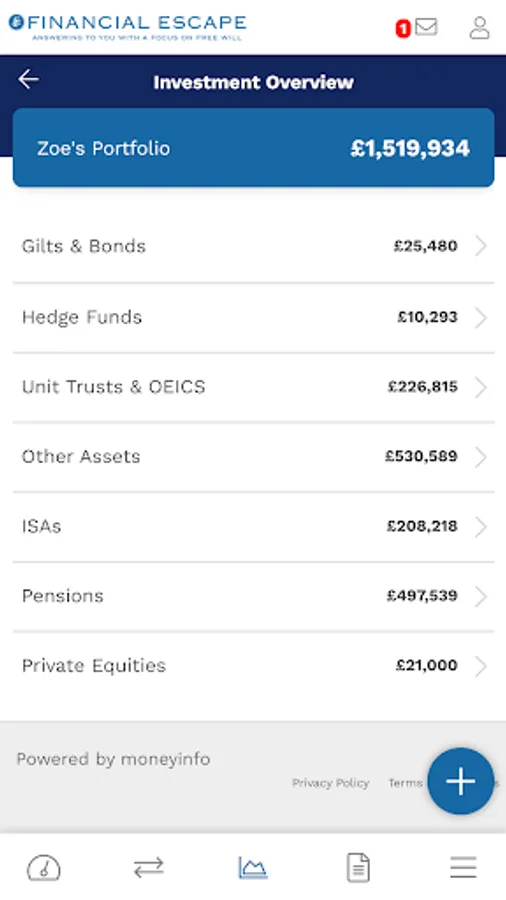 The MyFinancial Escape app is a service provided by Financial Escape Ltd and powered by moneyinfo that gives you a complete picture of your financial life.