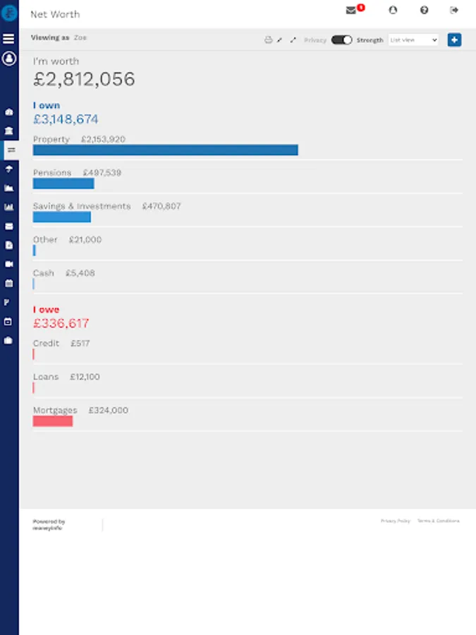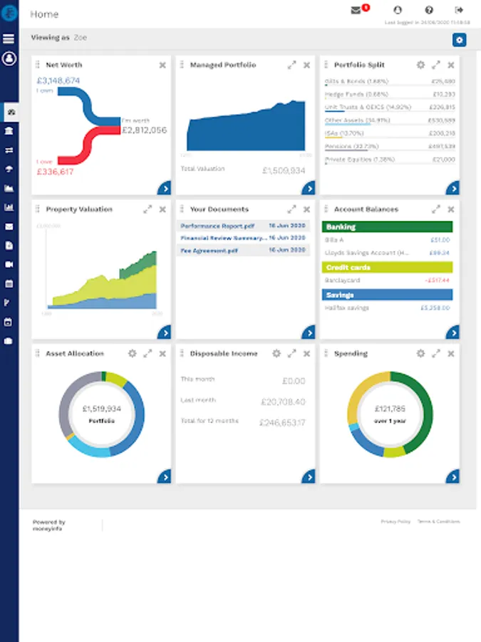 Think of it as your digital financial filing cabinet. All of your investments, savings, pensions, insurances, banking, credit cards and property can be tracked together with all of the associated paperwork.