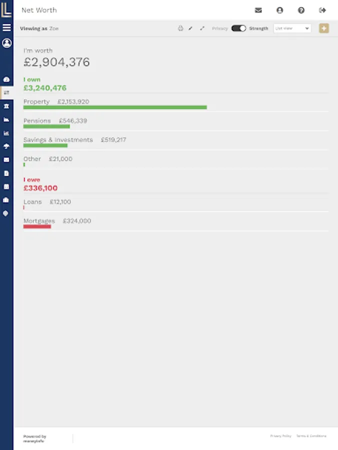 Think of it as your digital financial filing cabinet. All of your investments, savings, pensions, insurances, banking, credit cards and property can be tracked together with all of the associated paperwork.
