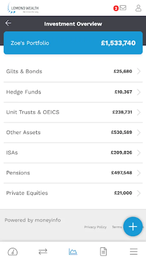 • From a single investment to an extensive investment portfolio; the Lomond Wealth MyWealth app makes it simple to understand how your investments are doing with daily valuations, share and fund prices.