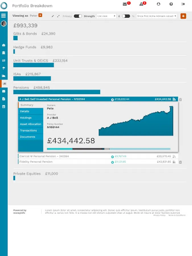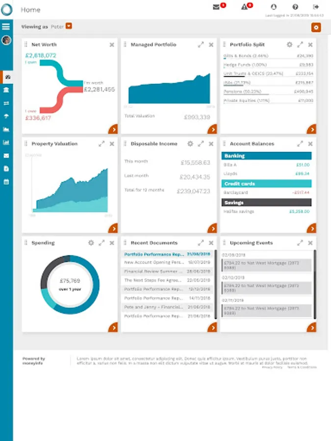 Think of it as your digital financial filing cabinet. All of your investments, savings, pensions, insurances, banking, credit cards and property can be tracked together with all of the associated paperwork.