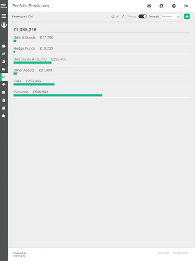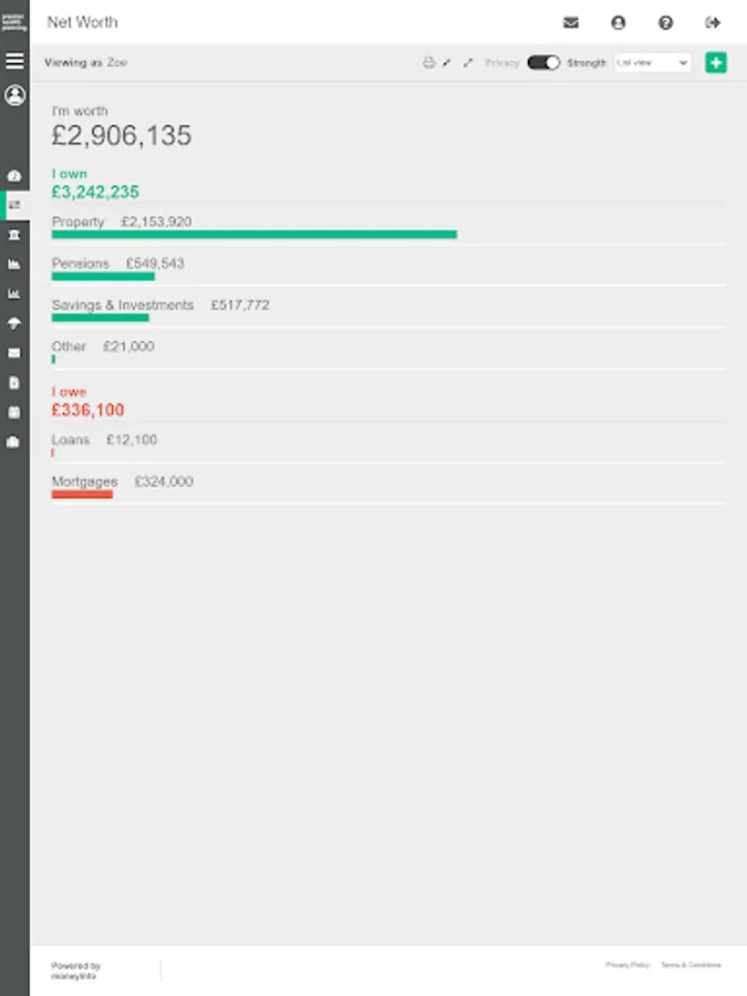 Think of it as your digital financial filing cabinet. All of your investments, savings, pensions, insurances, and property can be tracked with all of the associated paperwork.