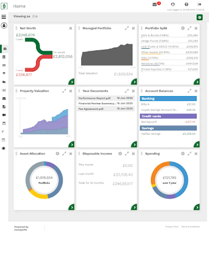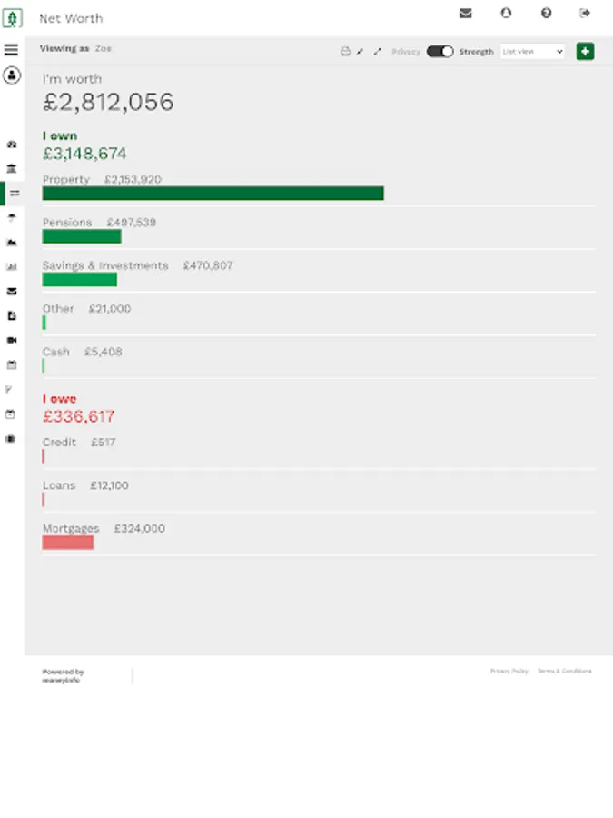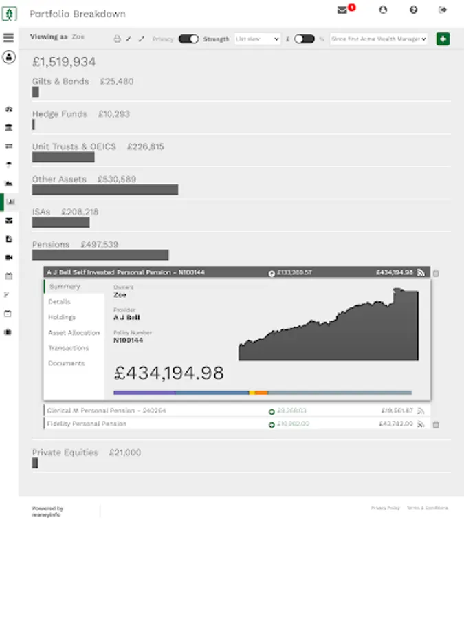 Think of it as your digital financial filing cabinet. All of your investments, savings, pensions, insurances, banking, credit cards and property can be tracked together with all of the associated paperwork.