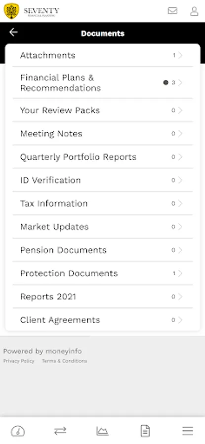 The My Seventy Portal app is a service provided by Seventy Financial Planning and powered by moneyinfo that gives you a complete picture of your financial life.
