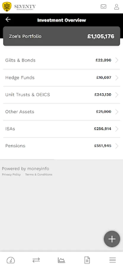 • From a single investment to an extensive investment portfolio; The My Seventy Portal app makes it simple to understand how your investments are doing with daily valuations, share and fund prices.