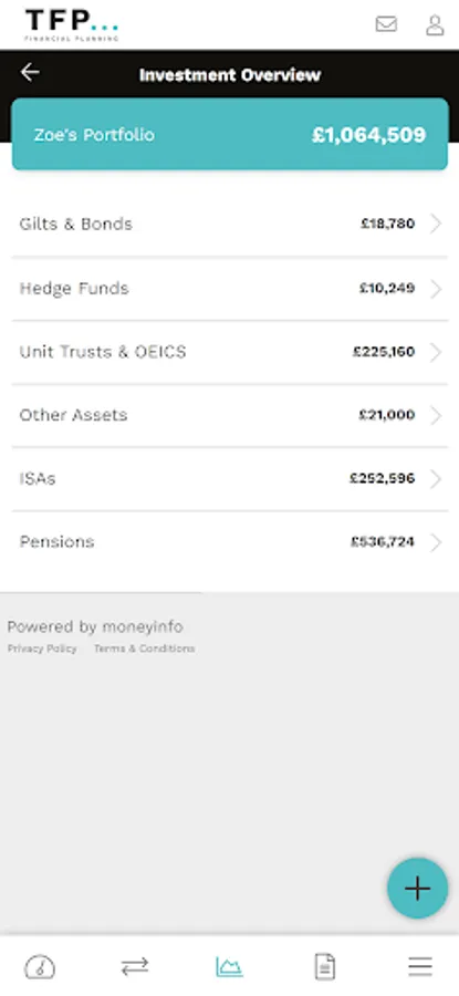 The My TFP Hub app is a service provided by TFP Financial Planning Ltd and powered by moneyinfo that gives you a complete picture of your financial life.