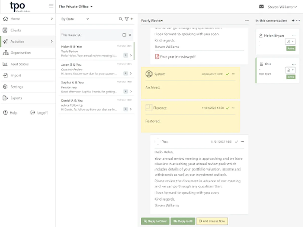 TPO Wealth Admin allows you to access the TPO Client Portal whilst on the move, so that you can provide the best possible service to your clients. You can view your client information & valuations, keep track of correspondence, share documents and securely send & receive messages wherever you are, without the need for your laptop!