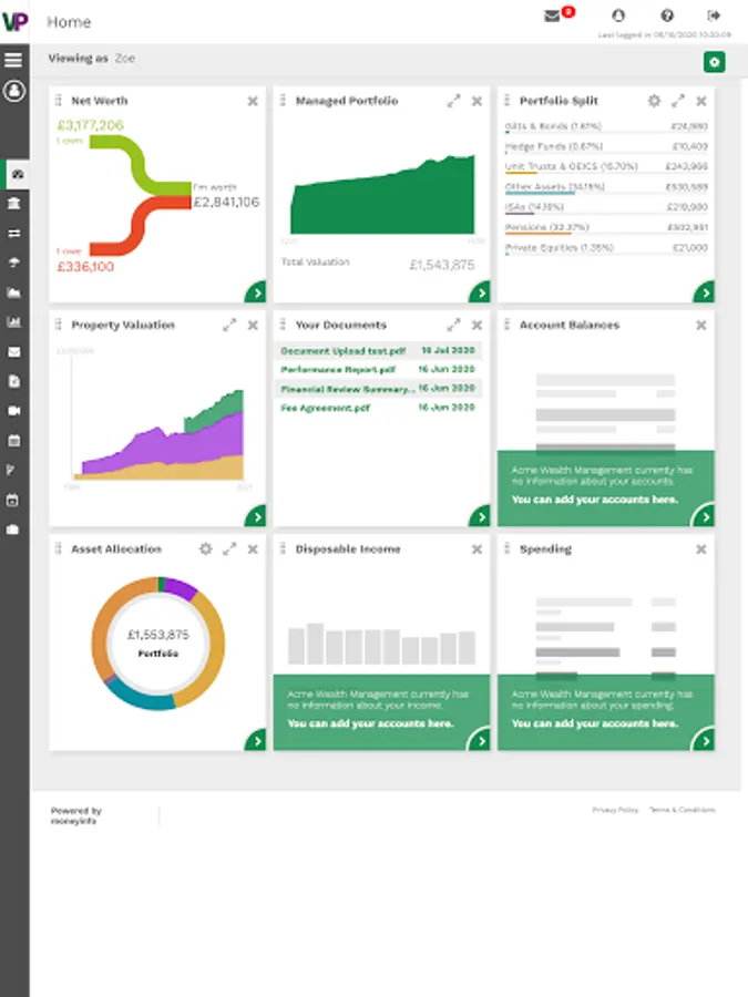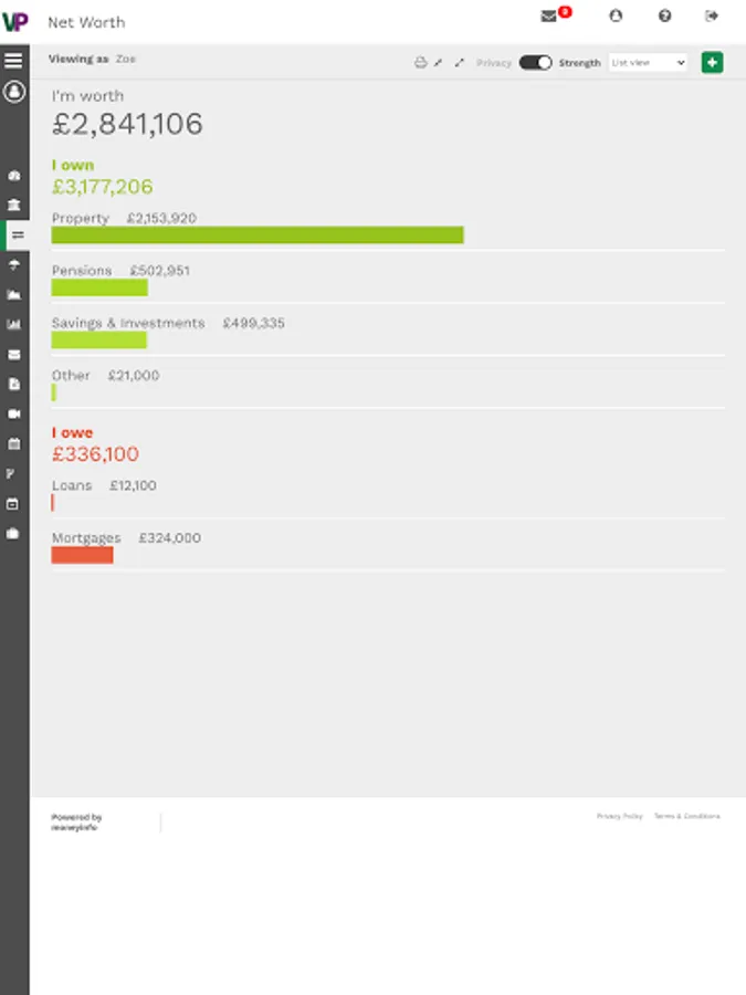 Think of it as your digital financial filing cabinet. All of your investments, savings, pensions, insurances, banking, credit cards and property can be tracked together with all of the associated paperwork.