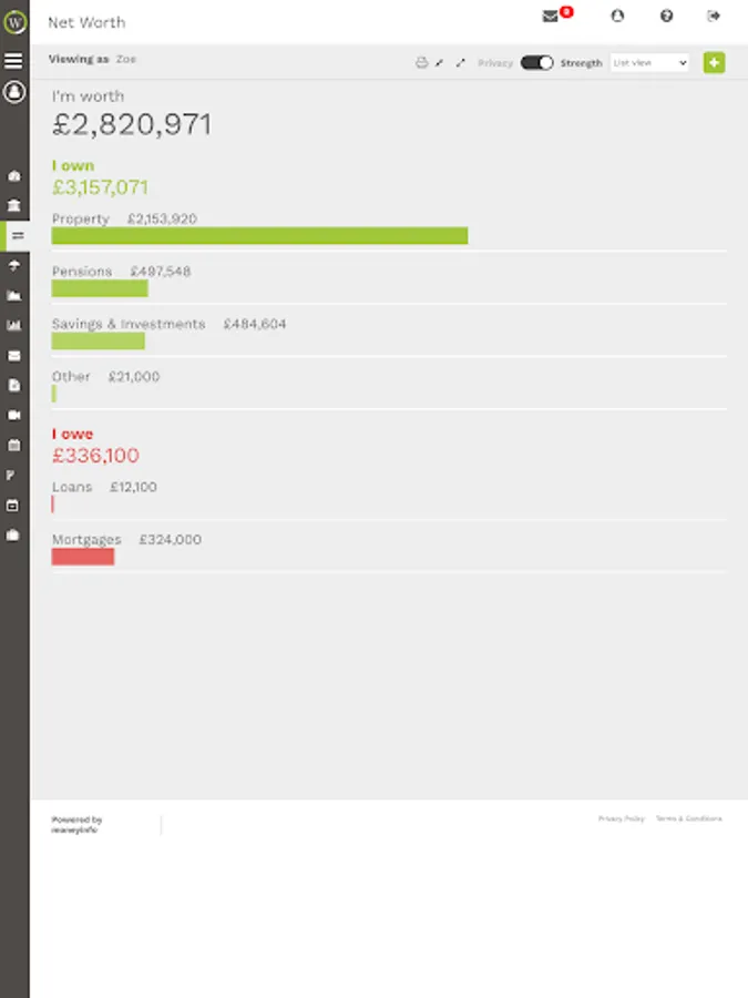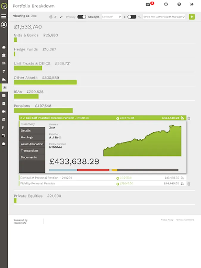 One place for everything financial. All of your investments, savings, pensions, insurances, banking, credit cards and property can be tracked together with all of the associated paperwork.