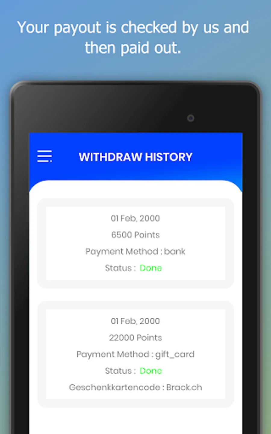 Collect points by completing surveys of different categories. You can then exchange these points for vouchers and more. The polls can cover all possible topics and you can choose the polls you want to answer. If you do not like the topic, you can easily cancel the survey.