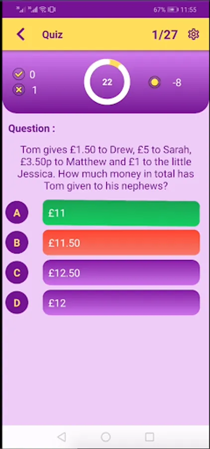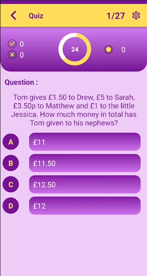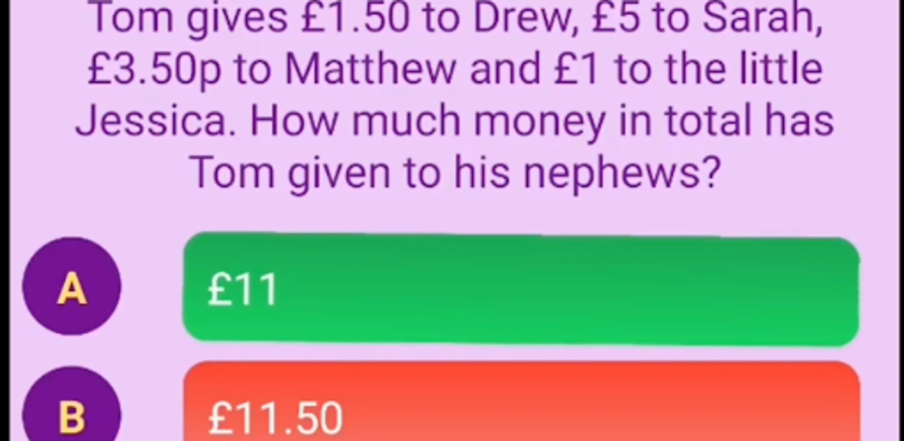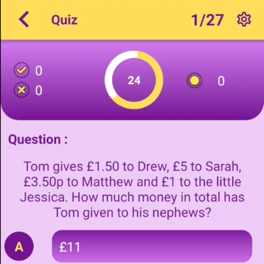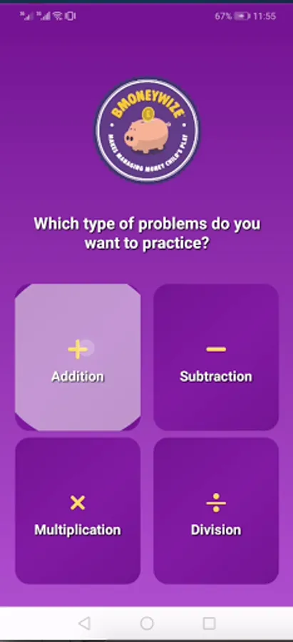 It is a simple game of maths where a user decides whether to practice addition, subtraction, multiplication or division. Upon the operation chosen the app displays scenario questions from which the user has to choose the correct answer out of four options presented.