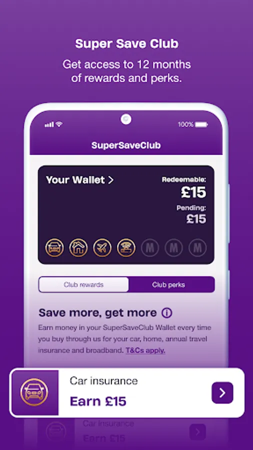Dozens of ways to super save at the touch of a button. Unlock rewards and perks with SuperSaveClub. Whip your credit score into shape, and keep your car on the road with MOT, tax and insurance reminders. Plus, super save on your household bills, over and over again.