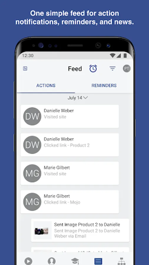 Feed: Keep track of everything you’ve shared and see what your contacts have viewed with notifications. You can even swipe notifications to mark them as a Reminder. News also brings all of the latest announcements and social posts from corporate straight to you--in one convenient place!