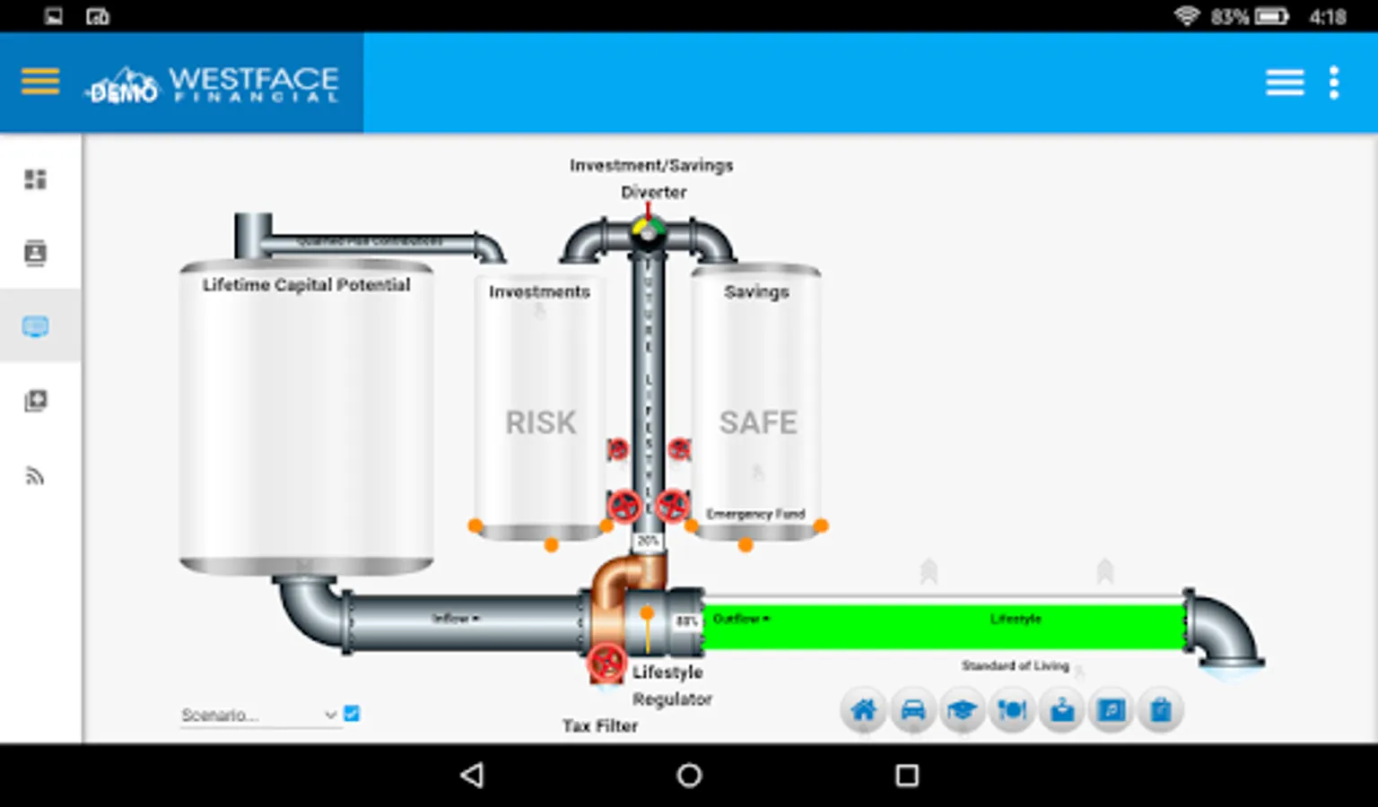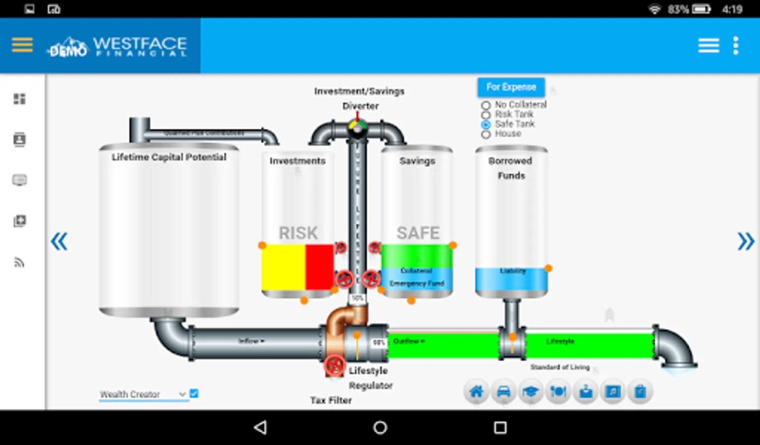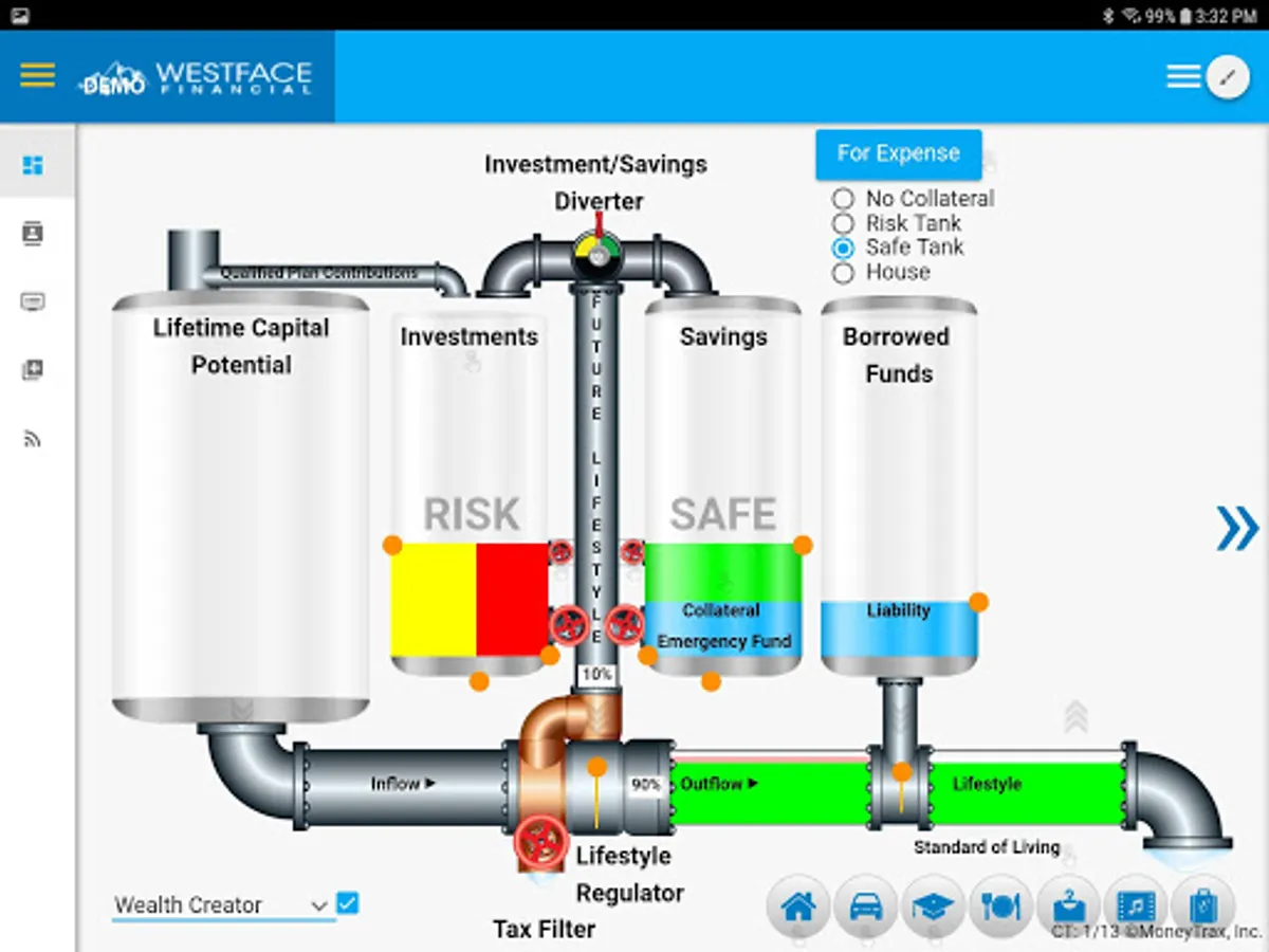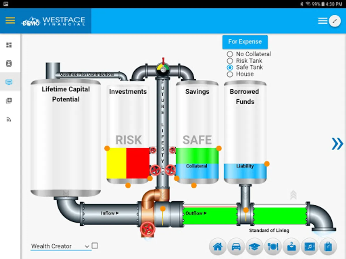 The Circle of Wealth® is a system that significantly improves the level and quality of communication between financial advisors and their clients. The supporting applications excel as “Visual Storyboards” to help the advisor clearly communicate the many ways to improve the efficiency of a client’s wealth during accumulation and retirement distribution. The visual storyboards cover over 100 individual financial concepts such as taxes, qualified plans, mortgages, college funding, savings plans, insurance protection, retirement planning, and many more.