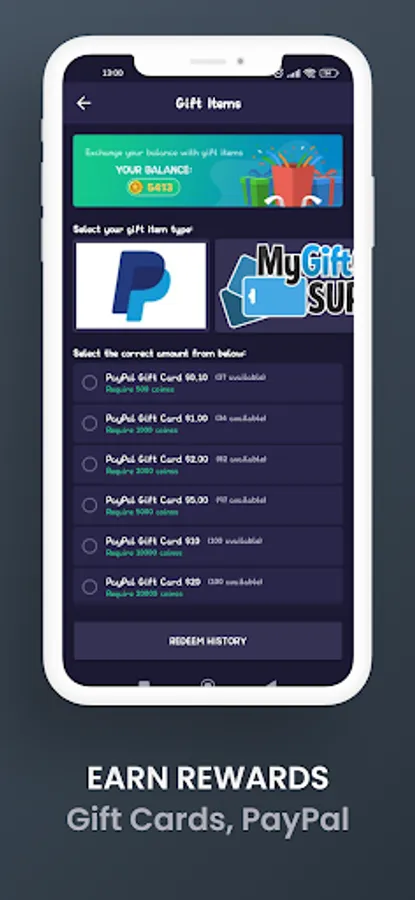 Collect virtual coins & use them to redeem all kinds of rewards and gift cards. We have a huge collection of Gift Cards, Vouchers and PayPal Cards. Earn PayPal Money, Google Play Gift Cards and much more to come