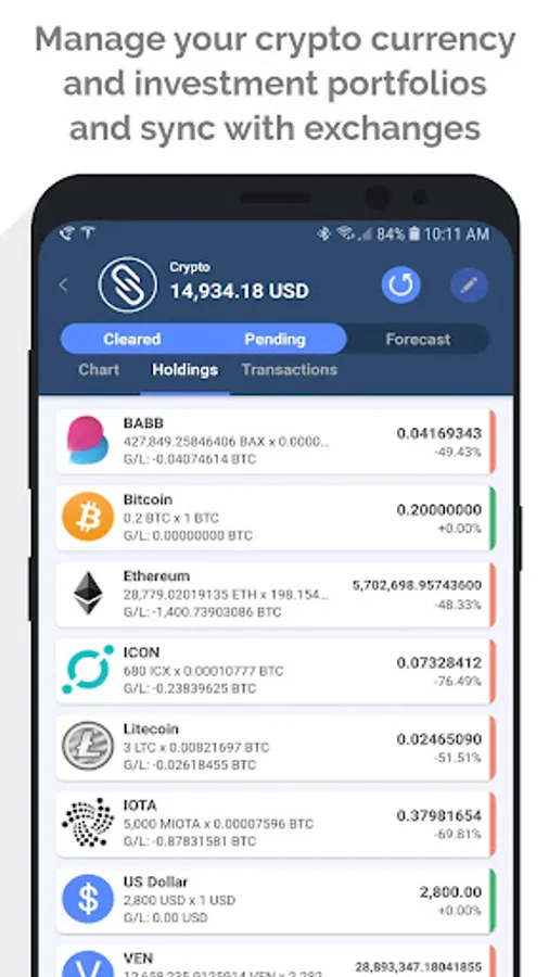 Our latest release includes support for forex and crypto-currencies. MoneyWiz is now the first finance-management application to fully support crypto-currencies trading on top of an already powerful feature set. You’re now able to see your entire portfolio, latest prices and your current net worth - all in one beautifully organized workspace!