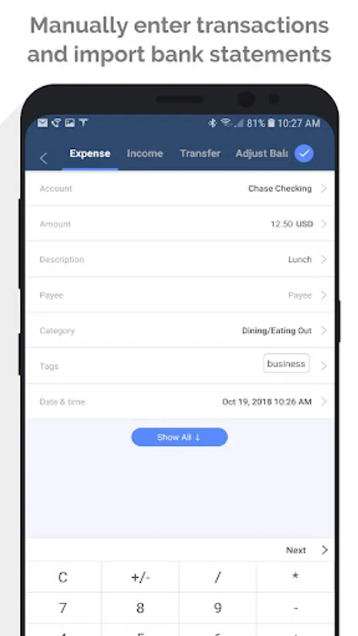 Not a fan of automatic online sync? Need to transfer data from another app? We’ve got you covered! You can still enter manual transactions with ease as well as import your transactions in form of CSV, QIF, OFX, QFX and MT940 files!