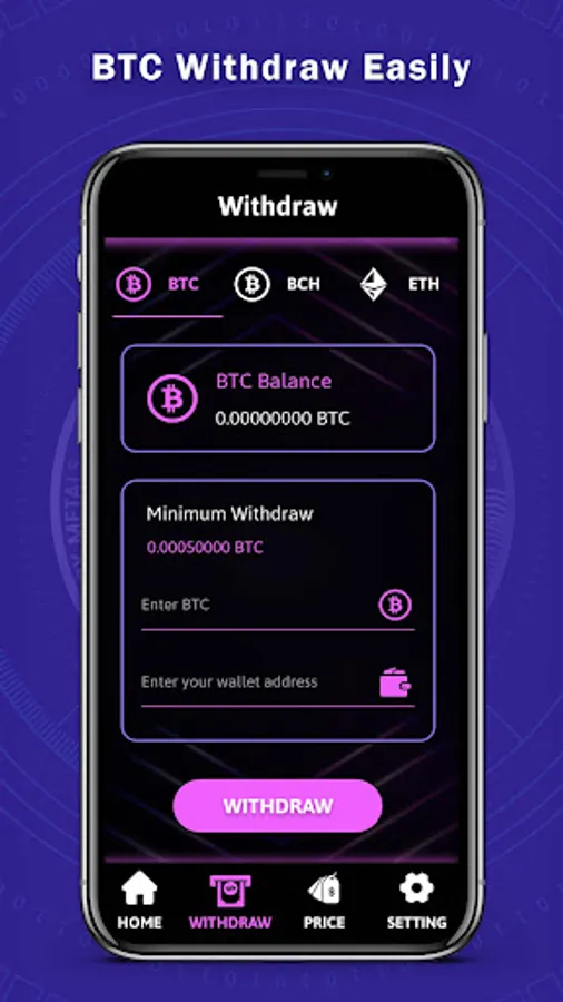 We provide a fastest crypto mining process to mine Bitcoin with a cloud technology. You can eary money from crypto is a trading and mining. And BTC mining app provide a mining feature. You can also refferal your friends and family.