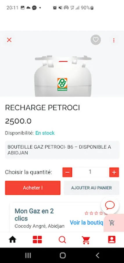 You can refill your gas or buy an empty or full bottle. We deliver everywhere in Abidjan